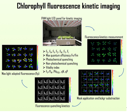 1.大型葉綠素?zé)晒獬上穹治觯簡畏上衩娣e35x35cm,成像測量參數(shù)包括Fo, Fm, Fv, Fo’, Fm’, Fv’, Ft, Fv/Fm, Fv’/Fm’, Phi_PSII, NPQ, qN, qP, Rfd等幾十個葉綠素?zé)晒鈪?shù)