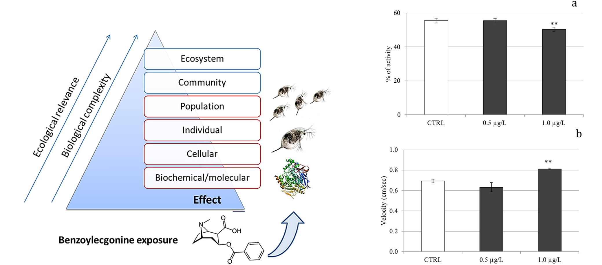 高濃度人體可卡因代謝物苯甲酰愛康寧(BE)暴露使大型溞個體的活動性顯著降低、游泳速率顯著增大 (Environmental Pollution, 2018)