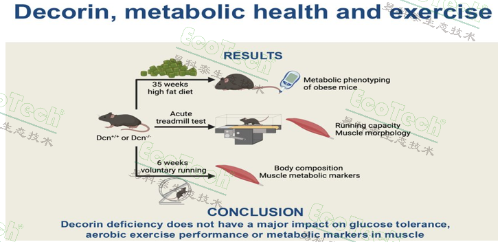 實驗測試結果表明,缺乏decorin不影響該小鼠肥胖或葡萄糖耐受不良的發(fā)展,對骨骼肌纖維大小或與代謝、肌發(fā)生或ECM形成相關的基因的表達沒有重大影響。