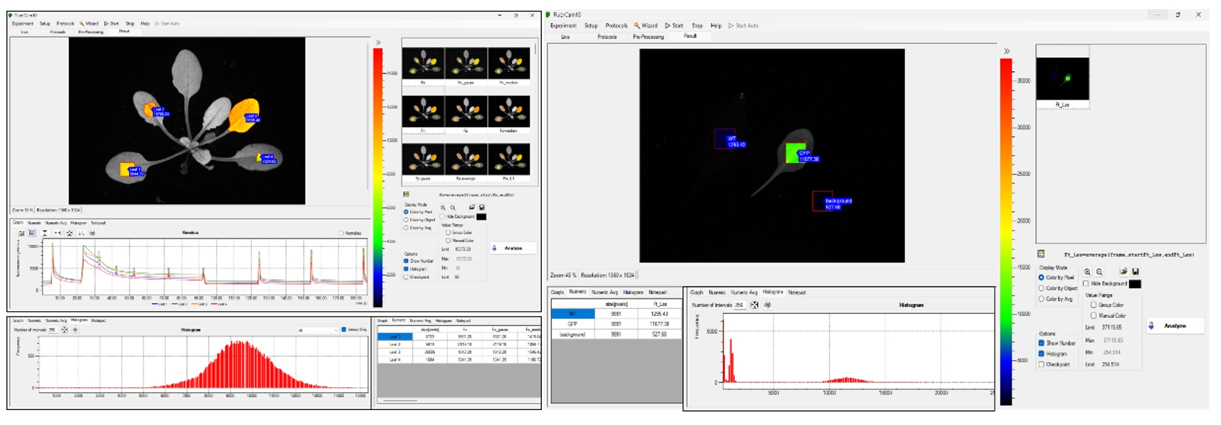 - FluorCam葉綠素?zé)晒獬上穹治鲕浖δ埽壕週ive(實(shí)況測試)、Protocols(實(shí)驗(yàn)程序選擇定制)、Pre–processing(成像預(yù)處理)、Result(成像分析結(jié)果)等功能菜單