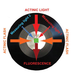 FL6000雙調(diào)制葉綠素?zé)晒鈨x是FL3500雙調(diào)制葉綠素?zé)晒鈨x的最新升級(jí)版,專(zhuān)門(mén)用于對(duì)藍(lán)綠藻或綠藻等微藻,葉綠體或類(lèi)囊體懸浮物進(jìn)行光合作用深入機(jī)理研究的強(qiáng)大科研工具。儀器具備雙通道測(cè)量控制,可控制測(cè)量樣品的溫度,并配備單翻轉(zhuǎn)光(STF),內(nèi)置多種可用戶(hù)自行修改的測(cè)量程序,可進(jìn)行目前國(guó)際上對(duì)于葉綠素?zé)晒獾母鞣N深入機(jī)理研究。其核心結(jié)構(gòu)是包含了一個(gè)懸浮液標(biāo)準(zhǔn)樣品杯的光學(xué)測(cè)量頭,內(nèi)置3組LED光源和1個(gè)1MHz/16位 AD 轉(zhuǎn)換的PIN二極管信號(hào)檢測(cè)器。AD轉(zhuǎn)換的增益和積分時(shí)間可以通過(guò)軟件控制。檢測(cè)器測(cè)量葉綠素?zé)晒庑盘?hào)的時(shí)間分辨率可高達(dá)4 μs(快速版為1μs)。