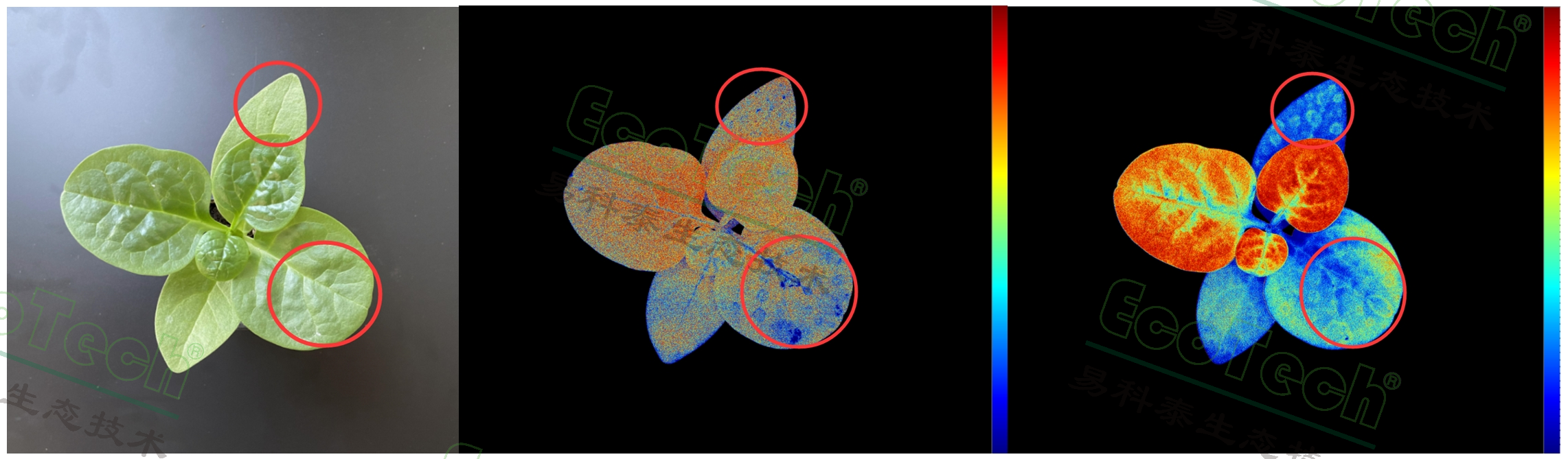 木耳菜植株葉片施加ABA(紅圈位置)快速檢測(cè)(EcoTech®實(shí)驗(yàn)室提供)
