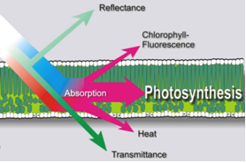 太陽輻射照射到植物葉片上,其中的藍色波段和紅色波段大部分被葉片吸收進行光合作用,另一部分(包括綠色波段、紅外波段等)以反射光的形式返回到大氣中,少量以熒光的形式發(fā)射到大氣中,還有部分則以熱的形式耗散。通過對葉片反射光成像測量分析(RGB彩色成像、多光譜或高光譜成像等)、多光譜熒光成像測量分析及葉片溫度測量分析(紅外熱成像),可以全面分析植物的性狀特征包括外部形態(tài)顏色、光合作用效率、氣孔動態(tài)、次級代謝等形態(tài)與生理生態(tài)特征,使植物表型數字化、生理生態(tài)及功能可視化。