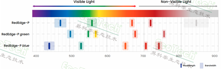 - 15波段超光譜覆蓋:融合RedEdge系列相機(jī)的光譜優(yōu)勢(shì),實(shí)現(xiàn)最多15個(gè)多光譜波段的同步捕獲,覆蓋可見光、近紅外及關(guān)鍵紅邊區(qū)域。其獨(dú)特的海洋藍(lán)及多個(gè)紅邊波段,可快速獲取PRI、ARI、CRI等植被指數(shù),精細(xì)化分析類胡蘿卜素、花青素等植物成分,挖掘肉眼不可見的深層信息。