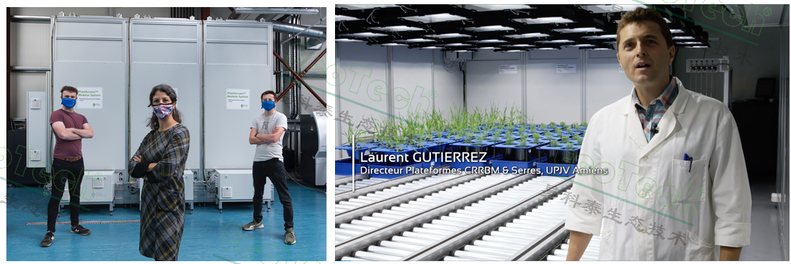 左圖:愛爾蘭都柏林大學(xué)Sónia Negrão教授與學(xué)生合影,身后為2020年新安裝的PlantScreen溫室高通量植物表型成像分析系統(tǒng)前。右圖:法國亞眠大學(xué)分子生物學(xué)區(qū)域資源中心與溫室平臺主任Laurent GUTIERREZ接受采訪,向外界介紹該校核心科研平臺——PlantScreen溫室高通量植物表型成像分析系統(tǒng)。照片中的兩位教授均為此次分享論文的作者之一。