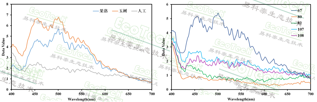 冬蟲夏草因其珍貴的藥用價值備受青睞,但也成為造假重災區(qū)。易科泰EcoTech®實驗室與山東農(nóng)業(yè)大學合作,利用FluorTron®系統(tǒng)對不同來源的蟲草進行了無損檢測。研究涵蓋果洛、玉樹產(chǎn)地的野生資源、市場高低品質(zhì)野生蟲草及人工培植蟲草。結果表明,野生蟲草在460nm和503nm處呈現(xiàn)兩個特征熒光峰,熒光強度顯著高于人工培植蟲草;而高品質(zhì)野生蟲草(67號)的熒光強度又明顯高于低品質(zhì)野生蟲草(80、82號)。熒光光譜如同一枚“指紋”,讓蟲草的產(chǎn)地與品質(zhì)無處遁形。