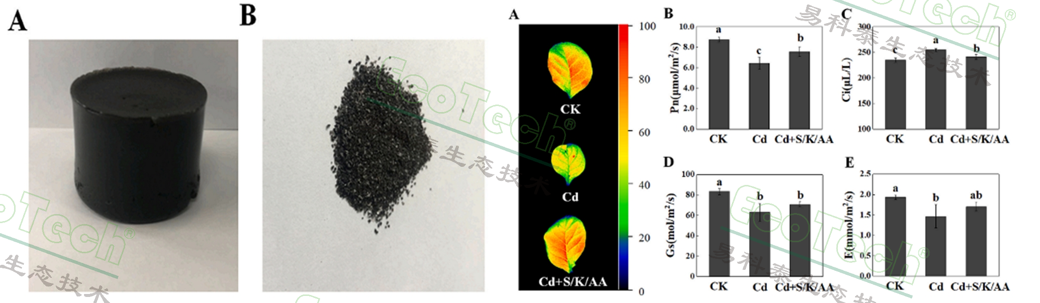 河南農(nóng)業(yè)大學(xué)在土壤中添加了一種新型聚丙烯酸接枝淀粉和腐植酸鉀復(fù)合水凝膠(S/K/AA),研究其對煙草生長和土壤微環(huán)境的影響。形態(tài)數(shù)據(jù)結(jié)果分析表明添加S/K/AA水凝膠可以顯著提高Cd脅迫條件下煙草生物量。通過FluorCam葉綠素?zé)晒獬上裣到y(tǒng)與光合儀對煙草光合能力進行測量,結(jié)果表明S/K/AA水凝膠同樣提高了Cd脅迫條件下煙草的光合能力,包括最小熒光Fo、光合速率(CO2同化速率)Pn、蒸騰速率E等。研究認為,S/K/AA水凝膠可能是通過Cd吸收轉(zhuǎn)運蛋白的表達來影響Cd吸收,從而降低Cd毒性。