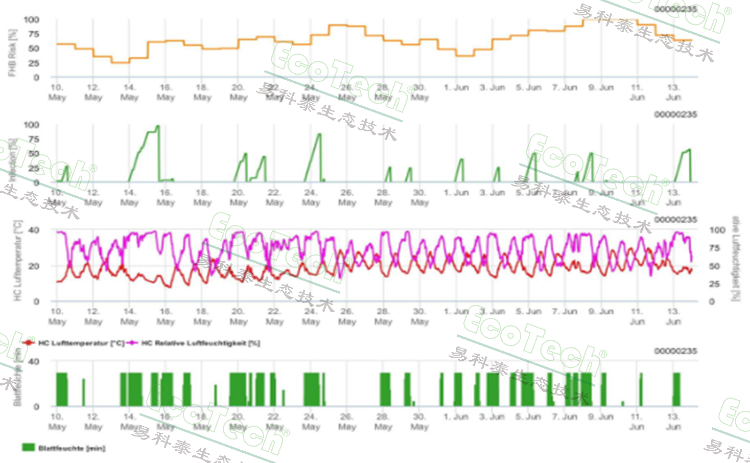 在疾病模型方面,METOS 氣象站具有顯著優(yōu)勢(shì),通過(guò)云端連接氣象站收集環(huán)境參數(shù),將其與病害的生物學(xué)特征和生命周期相結(jié)合開(kāi)發(fā)病害模型算法,用于預(yù)測(cè)農(nóng)作物疾病的發(fā)生與演進(jìn),總計(jì)涵蓋 40 多種作物和 85 種以上的疾病模型。