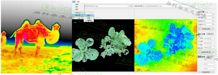 Thermo-RGB一體式紅外熱成像儀采用易科泰研發(fā)的紅外熱成像與RGB 成像融合分析技術(shù),可實時精準 ROI 分區(qū)分析和圖像分割,廣泛應用于植物表型分析、植物干旱脅迫檢測與抗性篩選等,及動物形態(tài)體溫生理變化,非接觸非損傷檢測動物健康與形態(tài)測量。